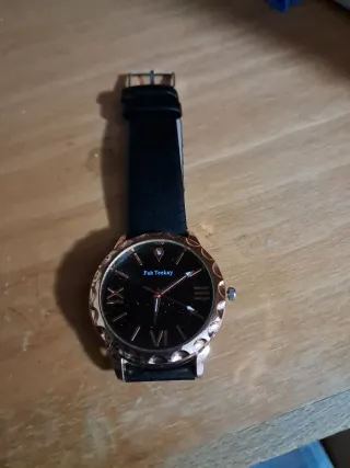 Reloj con esfera negra elegante y detalles dorados que le dan un toque moderno y sofisticado. Su correa metálica aporta resistencia y estilo, perfecto para el día a día o para lucir en ocasiones especiales. Precio negociable 😉⌚ - Esfera negra con adornos. - Correa de eslabones metálicos.
