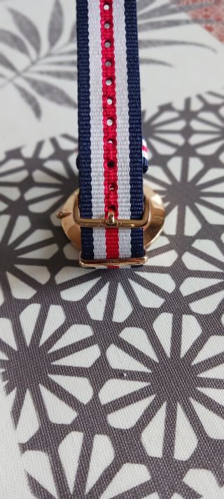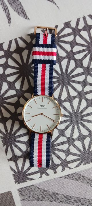 Reloj Daniel Wellington 40mm. Correa de colores, azul, blanca y roja. En perfecto estado.Se envía sin pilas.