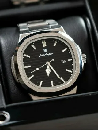 Reloj Poedagar Negro y Plateado