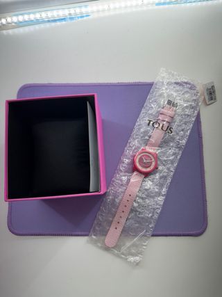 Reloj de la marca Tous en color rosa. Presenta un diseño moderno y juvenil. - Correa de tela con detalles. - Esfera redonda. - Cierre de hebilla.