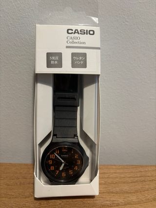Vendo reloj Casio, modelo MW-240-4BJH. Se encuentra nuevo, en su caja y precintado. Resistente al agua. Negro con detalles en naranja. Otros artículos de interés en mi perfil. Hago precio especial pack. Interesado/as no dudéis en contactarme!