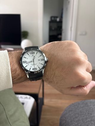 Reloj Viceroy con esfera blanca y detalles en negro. - Correa de caucho negra. - Bisel negro con marcadores plateados. - Resistente al agua 100M/330FT.
