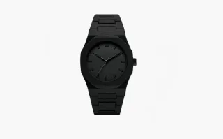 Elegante reloj con esfera negra y detalles plateados. - Diseño moderno y sofisticado. - Correa de acero inoxidable.