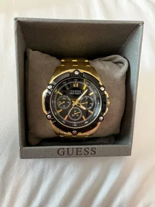 Reloj Guess GW0210G1 original y brazalete en acero inoxidable dorado El reloj se encuentra en buen estado y funciona perfectamente. Características: • Día de la semana, fecha y formato 24h • Movimiento de cuarzo • Esfera negra con subesferas multifunción en perfecto estado • Diseño deportivo y elegante • Envío con caja original y ajuste de tamaño Si necesitas más fotos o tienes alguna duda, puedes escribirme sin problema.