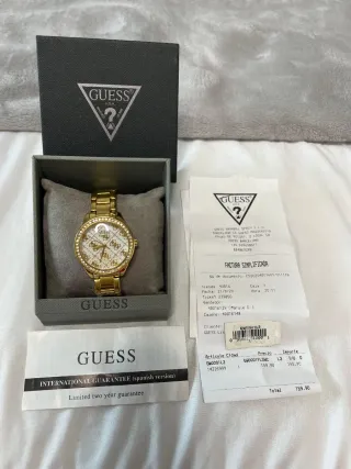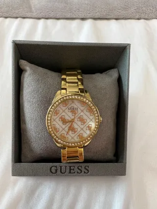 Reloj Guess referencia GW0001L2 original en acabado dorado. El reloj se encuentra en buen estado y funciona perfectamente. Características: • Esfera con patrón del logotipo Guess • Movimiento de cuarzo • Material acero inoxidable dorado • Bisel con cristales decorativos • Envío en caja original y ajuste de tamaño Si necesitas más fotos o tienes alguna duda, puedes escribirme sin problema.