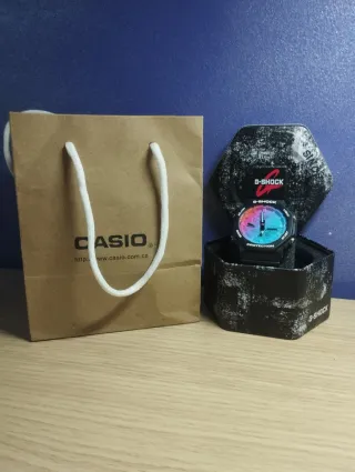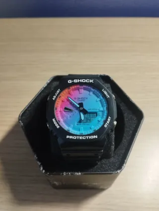 Reloj G-Shock con un diseño llamativo y moderno. - Esfera con degradado multicolor. - Correa negra. - Incluye caja original G-Shock.