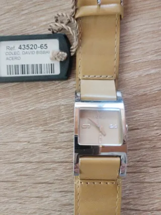 Muy rebajado!!! Por cese de negocio Reloj nuevo de la colección David Bisbal. Caja cuadrada de 2 cms. Esfera color mostaza como la correa Correa por detrás con señales desgaste pie el tiempo en negocio. No usado Por delante estado perfecto de la correa. Pila recién colocada