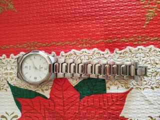 Elegante reloj con acabado plateado y una esfera blanca. Nuevo a estrenar Todavía conserva todas las pegatinas No se le pueden quitar los eslabones por eso lo vendo. La esfera es algo más pequeña - Diseño moderno y llamativo.