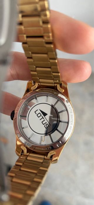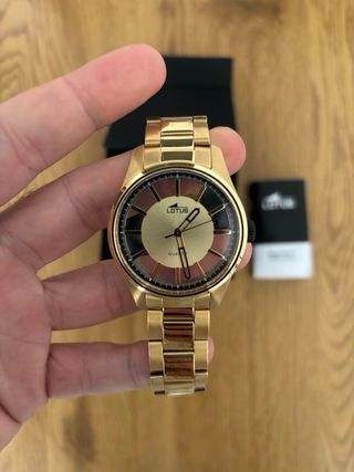 Elegante reloj de la marca Lotus con un acabado dorado. - Diseño moderno y sofisticado. - Caja y pulsera en tono dorado.