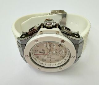 Reloj Hublot Big Bang con cronógrafo y esfera blanca. - Bisel blanco. - Correa de caucho blanca. - Detalles en tono plateado. Nuevo a estrenar