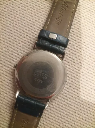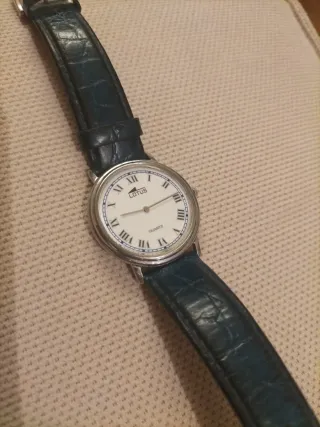 Elegante reloj Lotus con esfera blanca y detalles en números romanos. La correa es de piel azul con un acabado texturizado. - Esfera blanca con números romanos. - Correa de piel azul. - Cierre de hebilla. - Precisa ponerle la pila.