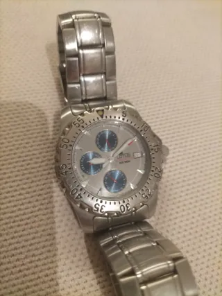 Reloj de pulsera Lotus modelo 15009 con acabado plateado. - Diseño deportivo con cronógrafo. - Correa de metal. - Resistente al agua WR 100M. - Precisa cambio de pila.