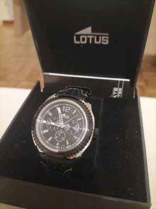 Elegante reloj de la marca Lotus con una combinación de colores negro y plateado. Jamás usado. - Diseño moderno y sofisticado. - Caja y detalles en plateado. - Correa negra. - Esfera con detalles en plateado. - Precisa cambie pila.