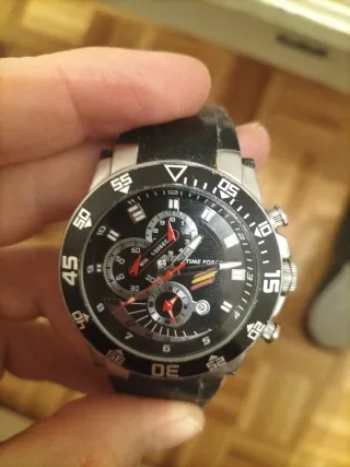 Reloj deportivo Spazio24, modelo Ocean Chrono, con correa negra de silicona. Estado: nuevo, sin marcas, perfecto. No incluye pila, por lo que no se puede probar el funcionamiento. Ideal para uso diario, regalo o colección. Entrega en mano o envío por Wallapop.