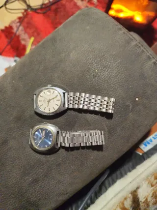 Dos relojes vintage de la marca Citizen. Y otra - Un reloj con esfera plateada. - Un reloj con esfera azul. - Ambas piezas cuentan con brazalete metálico plateado. Funciona bien salvo un detalle Información por privado