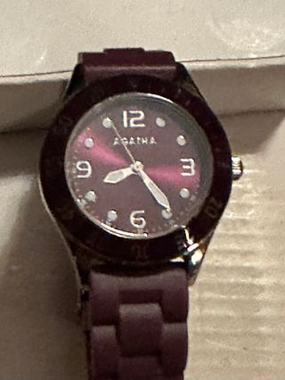 Elegante reloj de pulsera para mujer de la marca Agatha. Su diseño combina tonos morados y rosados para un toque de color. - Correa de material resistente. - Esfera con detalles brillantes.