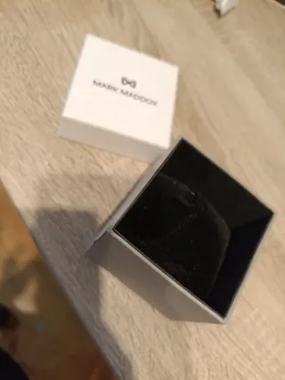 Caja original para guardar un reloj de la marca Mark Maddox. Su diseño es elegante y funcional. - Color blanco y gris. - Material texturizado.
