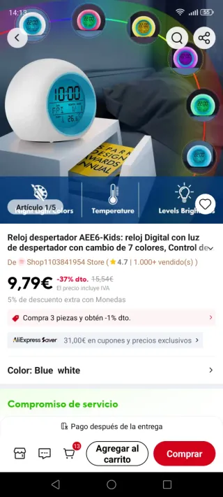 Reloj despertador digital 7 colores