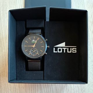Elegante reloj Lotus Connected con detalles en dorado. - Esfera negra. - Correa de malla negra. - Bisel con detalles dorados.