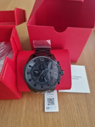 Reloj Diesel modelo Mega Chief con una esfera multifunción y un diseño moderno. - Correa de eslabones. - Caja de acero inoxidable. - Resistente al agua.