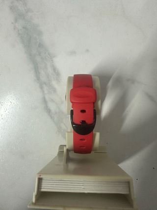 Reloj inteligente para niños de la marca SaveFamily. t - Color rosa con acabado brillante. - Correa con múltiples ajustes. - Incluye cargador. - Guía rápida de inicio. Tiene algunas pequeñas marcas en el marco del roce con el uso