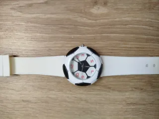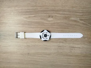 Reloj con diseño divertido inspirado en un balón de fútbol. 📌 Correa de silicona blanca. 📌 Esfera con detalles en blanco y negro. 📌 NO tiene MARCA. 🏷️ Precio NO negociable. 📩 SÍ envío.
