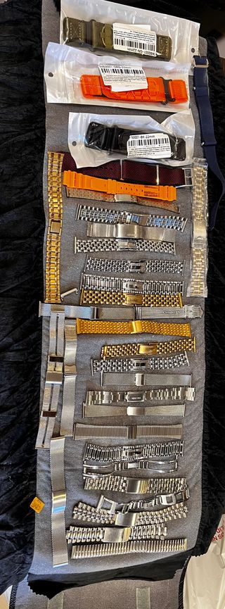Lote 75 correas de piel sin usar, 40 armis clásicos vintage y actuales nuevos y algunas deportivas y Sobre 70 eslabones de armis de todo tipo.