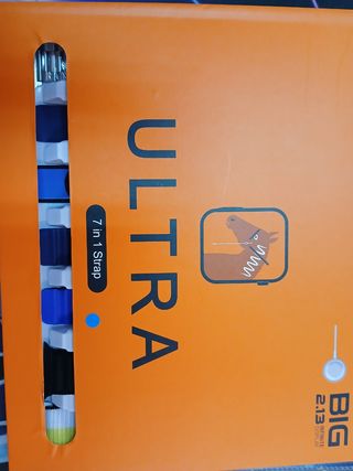 Set de smartwatch D2000 Ultra 3 con accesorios. - Incluye 7+1 bandas intercambiables. - Incluye auriculares inalámbricos. - Incluye ventilador de cuello recargable.