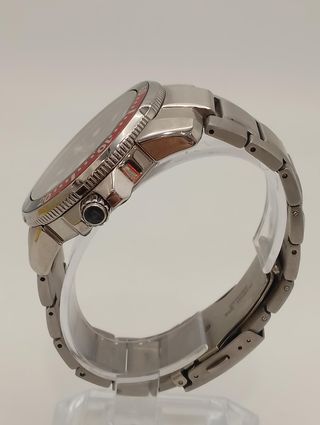 Reloj juvenil con un diseño moderno y llamativo. - Esfera con detalles en rojo. - Correa de metal. - Bisel con escala taquimétrica.