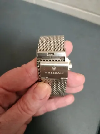 Elegante reloj Maserati Potenza para hombre con un diseño moderno y sofisticado. - Brazalete de malla metálica. - Cierre desplegable con logo grabado.