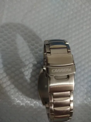 Elegante reloj carrera de cuarzo original. - Esfera con marcadores de hora. - Correa de metal. - Resistente al agua 100M.