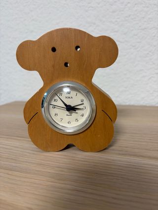 Encantador reloj de sobremesa con forma de oso, fabricado en madera. - Diseño de oso. - Material de madera. - Detalles plateados en la esfera.