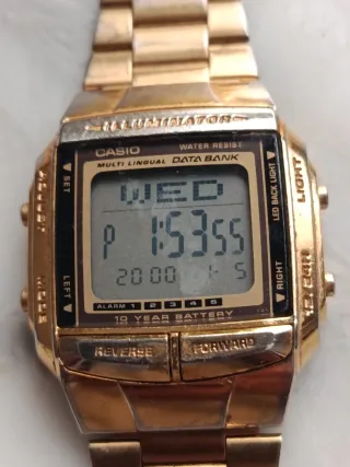 Reloj Casio iluminator DB 360 (2515) en condiciones aceptables. El reloj tiene bastante desgaste (ver fotos) pero funciona bien Reloj Casio modelo Data Bank con acabado dorado y plateado. Un clásico funcional. - Función Iluminator para ver la hora en la oscuridad. - Resistente al agua. - Batería de 10 años de duración.