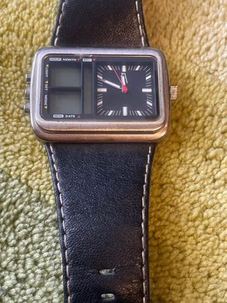 Reloj Casio vintage modelo GEOTRAIL FTL-111. En buen estado, algun rayazo, pero poco. Falta pila. Funciona correctamente - Correa de cuero marrón. - Esfera con detalles en verde. - Resistente al agua 100m.