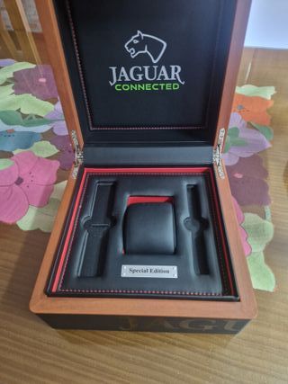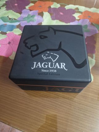 Elegante caja para reloj de la marca Jaguar, edición especial. - Diseño con el icónico logo del jaguar. - Acabado en color negro mate. - Incluye detalles Since 1938 y Special Edition.