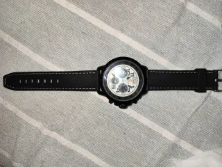Reloj con diseño de esfera grande y detalles en blanco. - Correa de cuero negra con costuras blancas. - Bisel con escala taquimétrica. - Tres subesferas en la esfera principal. - Esta como nuevo funciona perfectamente