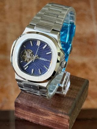 Reloj estilo Seiko MOD -Movimiento automático de Seiko nh38. -Brazalete acero. -Montado y ajustado con cuidado. -Funcionamiento correcto probado. 🔹¿Qué es un Seiko MOD? Es un reloj personalizado que utiliza un movimiento automático de Seiko, en este caso nh38, conocido por su fiabilidad. Combinado con caja, correa y agujas aftermarket de calidad. No es una réplica ni un reloj falso. ‼️Prefiero responder las dudas ANTES de la compra, no después.