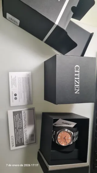Sin estrenar, con plasticos, caja, papels y eslabones. Comprado en Noviembre 2025. Elegante reloj Citizen Tsuyosa con una llamativa esfera en tono rosa dorado. Su diseño combina estilo y funcionalidad. - Esfera de color rosa dorado. - Mecanismo automático. - Correa de metal. - Ventana de fecha.