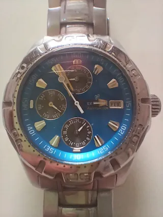 Reloj Festina original con caja y pulsera de acero inoxidable. Diseño deportivo con esfera azul y subesferas multifunción. Características ✔️ Marca: Festina ✔️ Modelo: F16242 ✔️ Caja y pulsera de acero inoxidable ✔️ Calendario (día / fecha) ✔️ Esfera azul con indicadores luminiscentes ✔️ Cierre metálico Estado Buen estado general, con pequeñas marcas normales de uso en el acero (ver fotos).