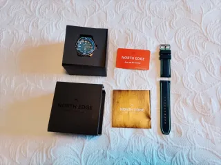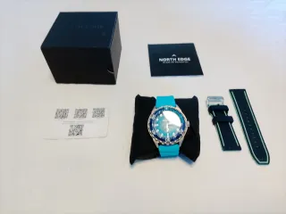 NORTH EDGE TRITON-TI Reloj de buceo solar con caja de titanio, reloj de cuarzo de lujo para hombre, resistente al agua hasta 300 m, con más de 180 días de bateria. Especificaciones del TRITON-TI Modelo: TRITON-TI. Material de la caja: Aleación de titanio. Material de la correa: Caucho de silicona en fase de vapor/aleación de titanio. Longitud de la caja: 51,4 mm. Grosor de la caja: 16 mm. Diámetro de la caja: 45,8 mm. Ancho de la correa: 24 mm. Lo compré hace dos meses y lo usé ocasionalmente. Está como nuevo, con otra correa de silicona de alta gama.