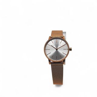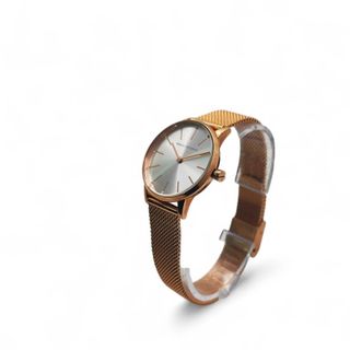 Elegante reloj de pulsera para mujer con un diseño sofisticado. - Bisel y eslabones en tono oro rosa. - Caja y pulsera en tono plateado. - Esfera clara con detalles. - Cierre de seguridad.