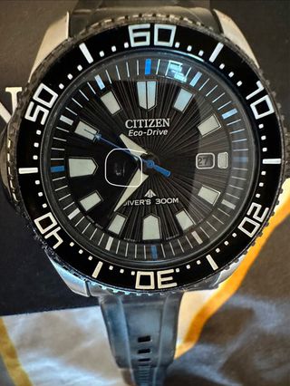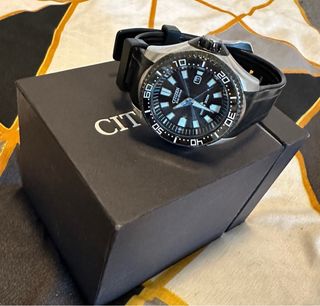 Reloj Citizen promaster Eco-Drive con diseño de buceo. - Pequeña marca en el cristal ver fotos - Esfera negra. - Bisel giratorio. - Correa de caucho negra. - se carga con la luz