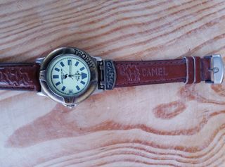 Reloj de pulsera Camel - Correa de cuero marrón. - Bisel giratorio con inscripción Trophy. - Indicador de fecha. -Funcionando