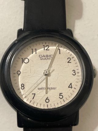 Reloj Casio con correa negra. - Esfera negra con números blancos. - Correa de resina. - Resistente al agua 100m.FARTA PILA