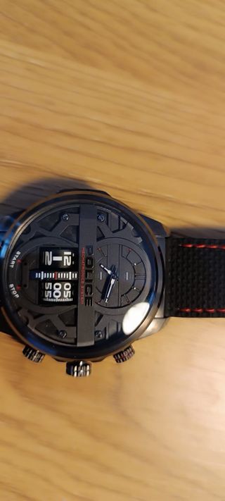 Reloj Police Negro con Detalles Rojos con Caja.