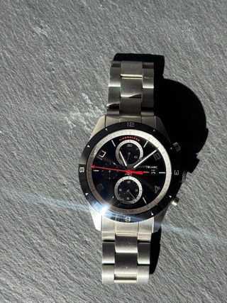 Elegante reloj Montblanc para hombre, modelo Timewalker. - Esfera negra con detalles plateados y manecillas rojas. - Correa de acero inoxidable. - Resistente al agua 100m/330ft. - Movimiento automático. No tiene caja y tampoco factura 🙏🏻