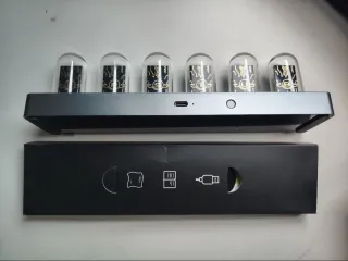 Reloj LED Nixie Digital Tube Clock, Glass Creativo Nixie Reloj Tubular con Indicador del Tiempo y Hora, Conexión WiFi APP, Álbumes de Fotos Digitales, Base Luminosa, Despertador Retro Moderno, Calendario y Hora, Foto Personalizada, múltiples Modos Disponibles, Luces y Pantalla Ajustables Mediante App, Nixie Tube Clock USB-C (Base RGB)