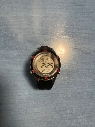 Reloj de pulsera para niño de la marca Marea. - No se ha usado nunca, siempre ha estado bien guardado y como se puede comprobar en las fotos esta perfecto. - Resistente al agua. - Correa de goma negra. - Reloj fabricado con materiales fuertes y resistentes. Es un reloj ideal para un niño ya que es muy resistente y ademas resistente al agua.