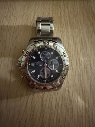 Reloj Lotus con diseño deportivo y elegante. - Esfera azul. - Bisel plateado con marcadores. - Correa de metal plateada, esta pensada para un niño pero se puede adaptar - Resistente al agua 10 ATM.