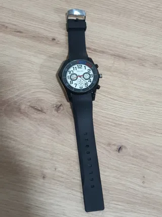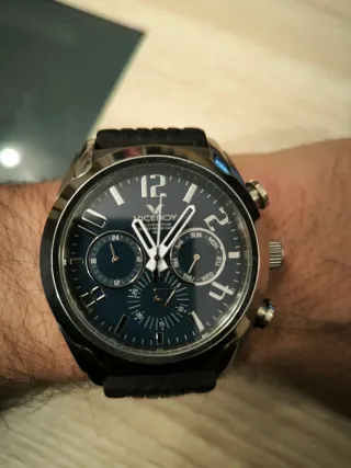 Elegante reloj Viceroy con detalles en plateado y correa negra de caucho que imita a rueda de formula 1. Revisado por Tecniwatch cambiado módulo GARANTIA hasta noviembre 2026, pila nueva. Como nuevo sin arañazos apenas usado. - Esfera con múltiples indicadores. Día de la semana día del mes segundos y marcador horario pm y Am. - Caja de acero inoxidable. - Cierre de hebilla. - sumergible 100m Movimiento japones esfera de 45mm como nuevo sin arañazos. P.c. Casio royal omega Rolex g shock edifice automático Speedmaster viceroy maurice lacroix tissot Seiko citizen orient Richard Mille, tous cartiel.